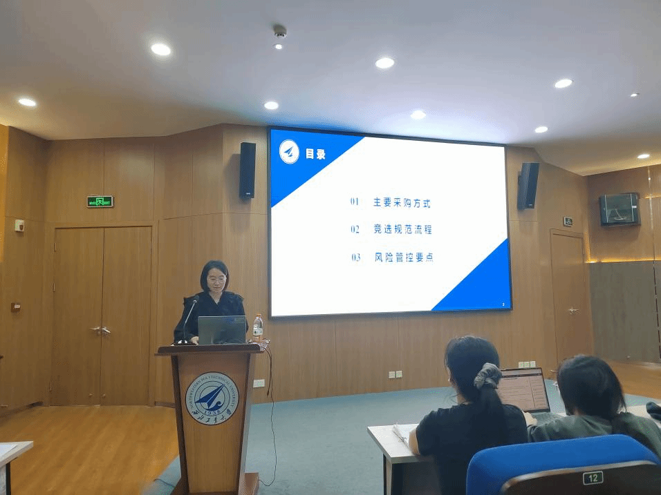 计划财务部合同办公室主任王小宁介绍了货物服务类合同签订规范与风险管控要点,对主要采购方式、竞选规范流程等内容做了重点说明,并对严禁合同拆分、严禁合同倒签、招标比选项目等风险管控要点等注意事项进行了解释说明。