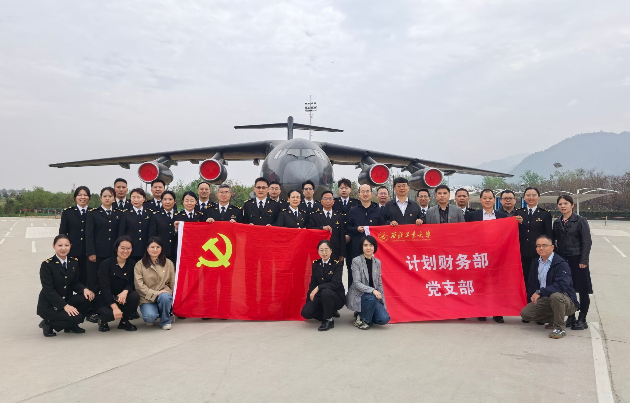 随后,双方共同走进西北工业大学军工素质教育实践中心开展现场学习。在运-20物理样机前,全体人员详细了解我国自主研制的首款大型多用途运输机——代号“鲲鹏”的研制历程与性能特点,该机可在复杂气象条件下执行各类物资和人员长距离航空运输任务。通过实地观摩,全体党员深切感受到一代代航空人“隐姓埋名、为国铸剑”的崇高报国情怀,深刻认识到实现高水平科技自立自强对于维护国家安全、支撑国防建设的重大战略意义。